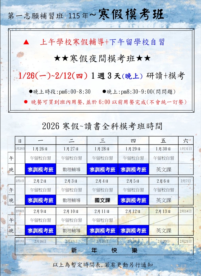 📌 開學就是第三次模考,寒假超級關鍵!